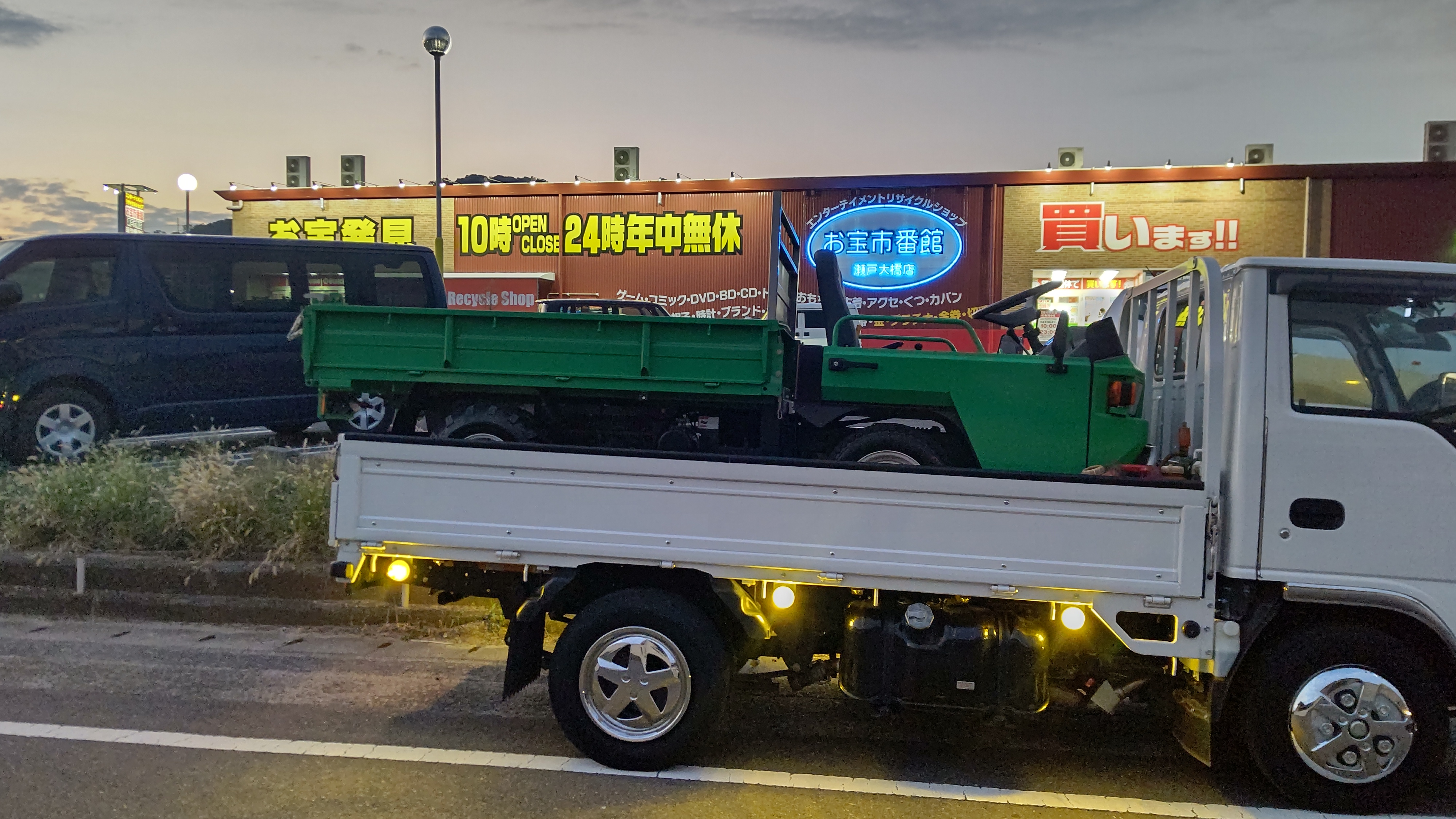 昨日の朝から今朝にかけて香川県の坂出市に中古の農機具を引き取りに行ってきました。往復時間はちょうど24時間かかりました。トラックでの往復時間にしては早いと思います。ヤフオクで落札した農機具で現在は製造されてないもので、殆ど使ってないみたいで中古品にしては良い買い物かなぁ?と思います。遠方なので現物を見られないリスクを冒しての買い物でした。昨日の夕方5時過ぎの瀬戸大橋と瀬戸内海に沈む夕日です。