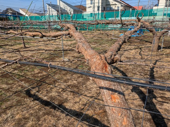 梨の粗皮削りが終了しました。これで今後3~5年位はやらなくて済みそうです。水圧で削ってみたら主枝の太い部分が腐ってフカフカになっているところが予想以上にありました。次にやる頃には豊水の老木はなくなっていると思います。段々と収穫量が減ってしまいます。写真は、粗皮削りの前(上)と後(下)です。