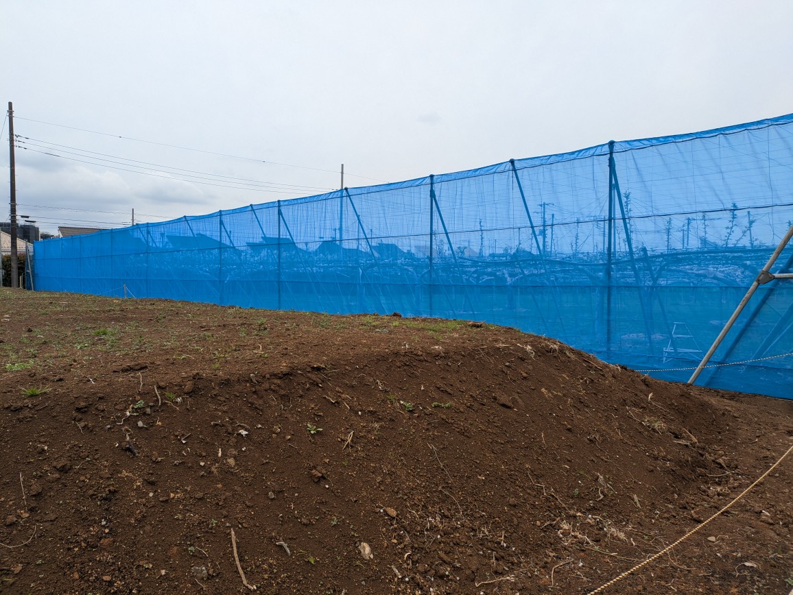 昨年末に注文しておいた防薬網が届き、早速設置しました。昨年限りで廃園した棚に隣接していたので、少し棚を移動した為新しく防薬網を設置。天井の防鳥網もそうですが、防薬網、防風網も圃場の大きさ形等に合わせて縫ってもらいます。オーダーメイドです。