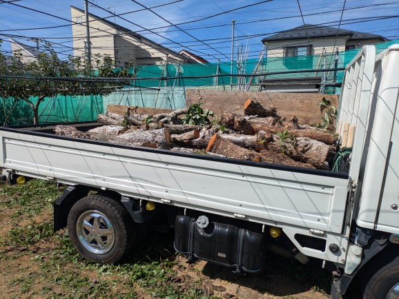 伐採した豊水の主枝等の太い木を処分場に運びました。一人で持てる位に切ったのですが、太いから重く腰が痛くなります。2,530㎏ありました。圃場の中に積んでおくと他の作業の妨げになってしまいます。