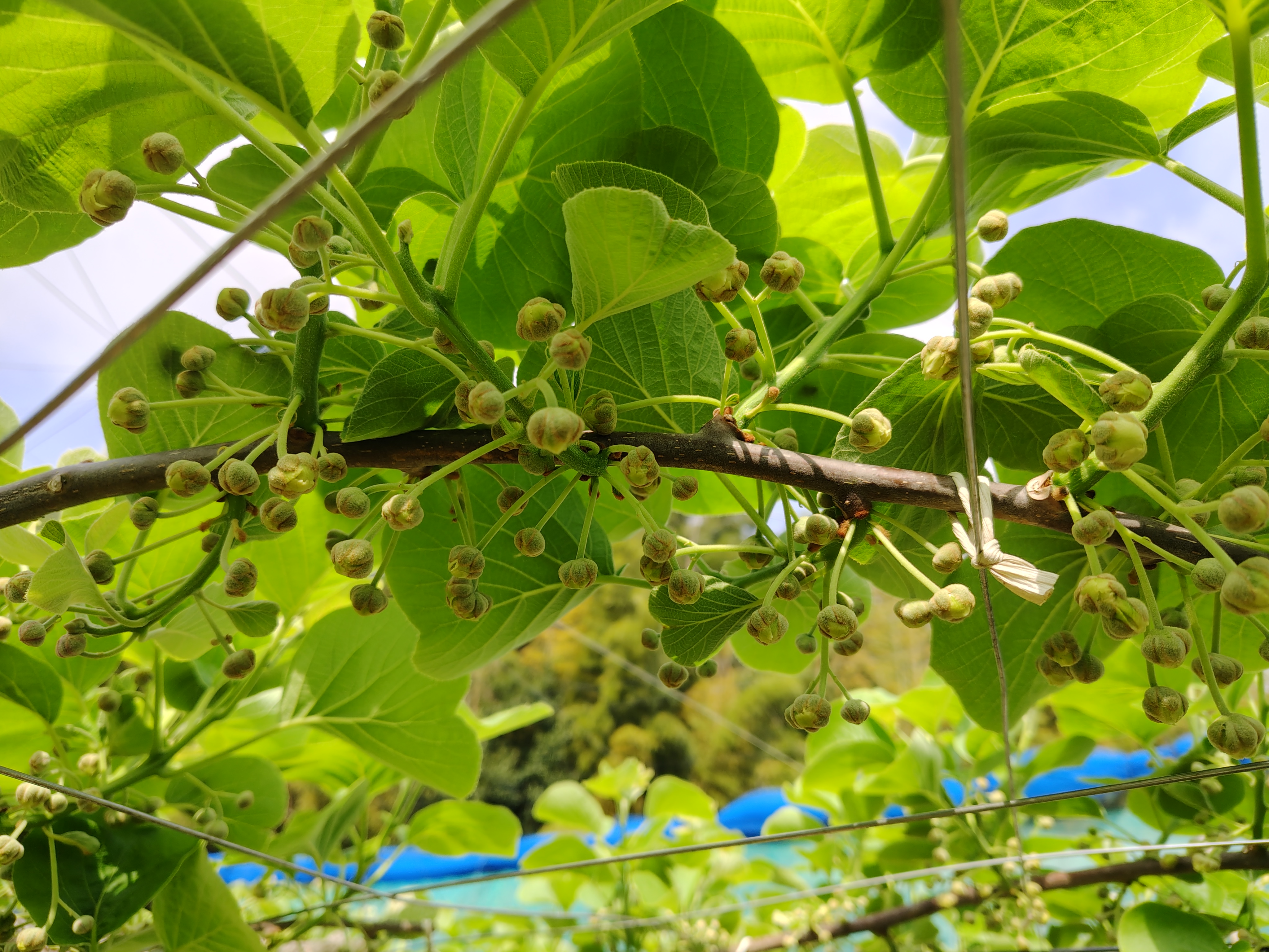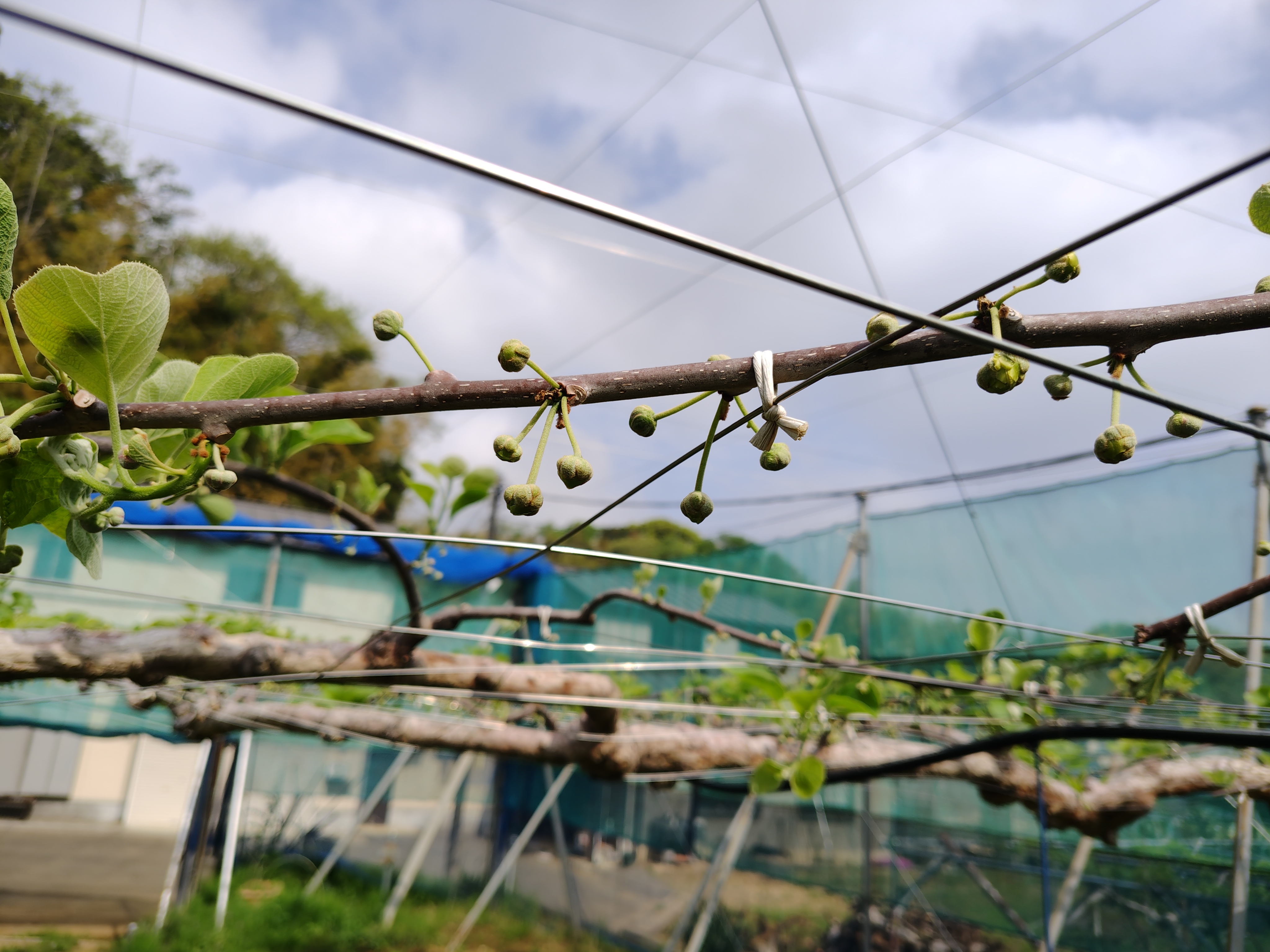 キウイフルーツの紅妃の摘蕾を行いました。今年は新芽の吹きが悪く、例年と比較して3割位の蕾です。見にくいですが、上から摘蕾前、摘蕾後、発芽不良の枝、芽。